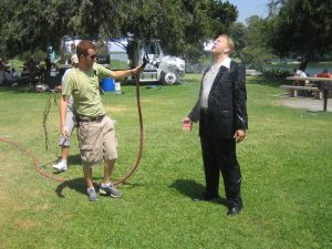 | Dan, Curtis Armstrong and Director (Savage) Steve Holland. | Hairstylist Inguna Sulce and Dan. | Andrew (Bubba) Caldwell and Dan. |